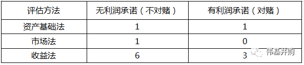 数据显示,平均股权支付比例为86.51%,而平均现金支付比例为13.49% (3月为13.05%),与3月份相比,现金支付比例有所上升。注:全部现金支付的不需证监会审批,不在统计之列。 f) 本月评估法与利润承诺情况  |