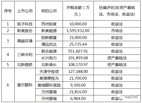 一、 民营企业爱尔眼科通过收益法估值,无对赌获监管机构通过 2020年4月23日,爱尔眼科发行股份及支付现金收购资产交易上会获有条件通过。本次交易中,爱尔眼科拟作价18.6988亿元收购天津中视信100%股权、奥理得视光100%股权、宣城眼科医院80%股权、万州爱瑞90%股权、开州爱瑞90%股权。本次上市公司民营企业爱尔眼科收购的标的,全部采用收益法进行估值,且未作利润承诺,获得了监管机构的通过。 二、 最近两年不对赌案例归类,民营收益法下一直没有突破,以往不对赌并购的案例主要包括以下几类 1) 国有企业之间的收购,可以不对赌,如美的集团以143.8亿的价格吸收合并小天鹅;云南白药以510亿元的价格吸收合并白药控股。美的集团(000333)与小天鹅(000418)均为上市公司,此次交易,采用市场法,属于上市公司并购上市公司,在交易中未安排业绩承诺与业绩补偿(不对赌)。云南白药(000538)原为白药控股的子公司,属于子公司反向吸收合并母公司。这次是云南白药反向收购母公司全部资产。此次交易,采用资产基础法,在交易中,未安排业绩承诺与业绩补偿(不对赌)。2) 采用资产基础法可以不对赌。能电力(000543)与神皖能源均为皖能集团的子公司,属于子公司收购子公司。此次交易,采用资产基础法,在交易中,未安排业绩承诺与业绩补偿(不对赌)。3) 采用市场法可以不对赌,如2020年4月,新奥股份收购香港上市公司新奥能源,采用的是市场法,没有对赌。4) 特殊目的公司收购可以不对赌,2019年6月,闻泰科技采用市场法,完成对特殊目的公司的收购。2019年3月,新开源公司采用收益法,完成特殊目的公司收购。新开源(300109)为了收购美国BioVision,Inc.公司,通过市场化的手段,设立特殊目的公司新开源生物,并通过间接持股的方式,收购了美国BioVision,Inc.公司100%股权。此次收购,系收购特殊目的公司新开源生物。本次交易,采用收益法估值,在交易中,未安排业绩承诺与业绩补偿(不对赌)5) 按《上市公司重大资产重组管理办法》,在采用收益法下,控股股东或其关联人向上市公司注入资产,构成重大资产重组的,需作利润承诺与完不成业绩的补偿机制。而《上市公司重大资产重组管理办法》第三十五条相关规定,上市公司与交易对方可以根据市场化原则,自主协商是否采取业绩补偿和每股收益填补措施及相关具体安排。非控股股东或其关联人向上市公司注入资产时,即使采用收益法,可以不安排业绩承诺与补偿机制。但民营上市公司非同一控制下的并购,如采用收益法,对赌成了潜规则,本月爱尔眼科的并购成了突破。统计数据显示,本月审核通过6家(对12个标的物),否决2家,另本月有1家上市公司主动终止/中止交易。 1月份,我国国内完成4家企业对9家标的物的并购,被否决1家,上市公司主动终止/中止交易1家;2月份,我国国内完成2家企业对2家标的物的并购,被否决1家,上市公司主动终止/中止交易0家;3月份,我国国内完成7家企业对14家标的物的并购,被否决0家,上市公司主动终止/中止交易1 家;4月份,我国国内完成6家企业对12家标的物的并购,被否决2家,上市公司主动终止/中止交易1 家。 a) 本月审核了5次,共审核了8家,其中通过6家,否决2家。 b) 通过部分名单