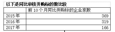 数据显示,前10个月同比比较,审核并购企业家数,不及2015与2016年的一半,并购重组进入寒冬。