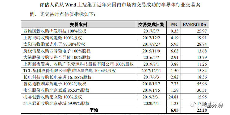 已上市的企业与未上市的标的企业,在规范与资本市场认可上,其价值不具备可比性,这种比较下得出的结论与估值,对闻泰科技的现有股东而言,没有任何实际意义,如果这种比较可行的话,我们完全可以直接通过二级市场直接购买这八家A股上市公司的股权,而不需把钱交给闻泰管理层去收购一个带有不确定性的项目。 当然,闻泰科技也提供了最近几年A股市场并购案例估值对比,并购标的之间(均未上市企业,均为收购对象)的对比或有参考价值,如下:
