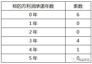 数据显示,有利润承诺的5家企业,利润承诺主要集中在2019年至2022年的四年, 2020年的可比年利润增长率为-57.60%,2021年的可比年利润增长率为6.86%,2022年的可比年利润增长率为24.26%。 c) 利润承诺年限统计如下:  6月份并购的11家标的企业中,不做利润承诺为主流,有6家,3年利润承诺有4家,4年利润承诺有1家。