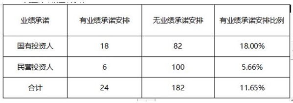 下表是2021年全年上市公司控制权变更业务,其中有业务承诺安排的24家,无业绩承诺安排的182家,有业绩承诺安排的仅占11.65%,属于少数,不是上市公司控制权变更业务中的主流条件。