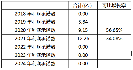数据显示,有利润承诺的3家企业,利润承诺主要集中在2019年至2021年的三年, 2020年的可比年利润增长率为56.65%,2021年的可比年利润增长率为34.08%。