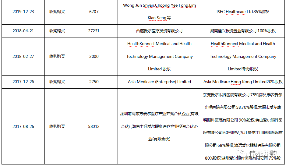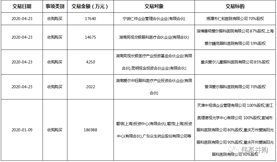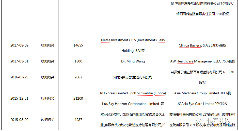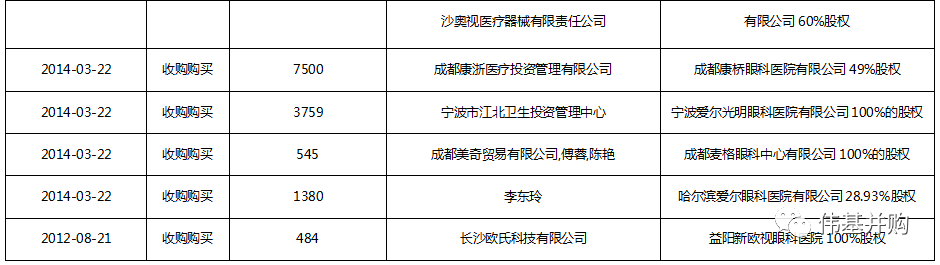 2、2012年开始第一笔收购,自上市以来,爱尔眼科总并购涉及标的超60个,总交易金额超过110亿元,具体收购统计如下: