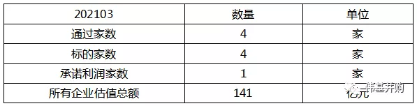 b) 利润承诺金额统计 数据显示,有利润承诺的1家企业,利润承诺主要集中在2021年至2023年的三年, 2022年的可比年利润增长率为1.84%,2023年的可比年利润增长率为2.85%。c) 利润承诺年限统计如下: 3月份并购的4家标的企业中,三年利润承诺1家,不做利润承诺3家,为主流。d) 平均PE值统计 e) 支付比例统计 数据显示,平均股权支付比例为87.97%,而平均现金支付比例为12.03% (2月为1.94%),与1月份相比,现金支付比例大幅上升。注:全部现金支付的不需证监会审批,不在统计之列。 f) 本月评估法与利润承诺情况